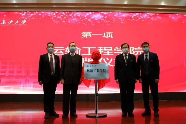 Biao Xiaohong, deputy secretary and vice president of Chang’an University’s party committee, introduced the background of the establishment of College of Transportation Engineering and announced the establishment documents of the college. Professor Chen Feng, secretary of party committee of Chang’an University, and Professor Sha Aimin, the principal, unveiled the College of Transportation Engineering.