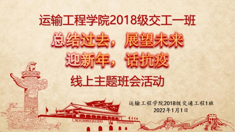 新年伊始,万象更新。2022年1月1日下午,2018级交通工程一班班主任田新民书记以及党员联系人卫东选老师与全班同学开展了近三个小时的线上班会活动,一起总结过去,展望未来,迎新年,话抗疫!