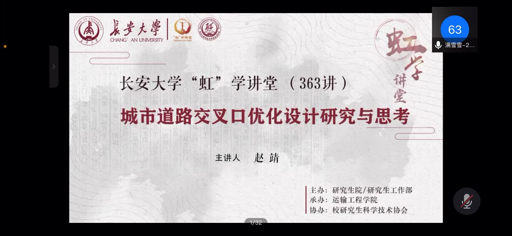 4月27日下午,由研究生院/研究生工作部主办、一品探花 承办、院研究生科学技术协会协办的“虹”学讲堂第363讲线上讲座顺利举办。上海理工大学赵靖教授作了题为“城市道路交叉口优化设计研究与思考”的报告。我校相关学院共计200余名师生参加了此次讲座。