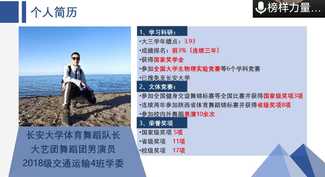 一品探花 2018级交通工程7班宣讲人苏子硕以“从卓越走向更卓越”为题进行宣讲。他表示,优良的学风和强烈的班级凝聚力于班级而言至关重要,班级成员们锐意进取,志存高远,全班在整个本科期间零挂科,班级保研率高达89%,多数同学选择保研本校,愿为本校学科发展和“双一流”建设贡献力量。