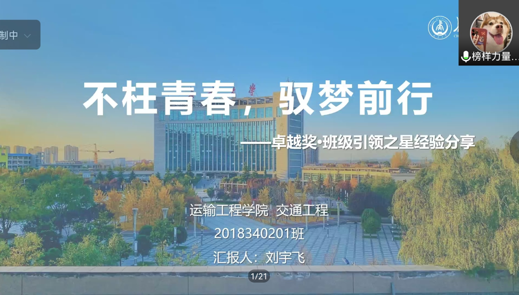 班级引领之星获得班级2018340201班团支书刘宇飞,在宣讲中表示班级建设至关重要,以“一人为大家,大家为一人”为班级的精神,以朴实、踏实、务实的作风为班级的行为准则,凝聚班魂,紧紧围绕树立坚定理想信念和建设优良班风学风的目标,能够团结全体同学,共同取得进步。
