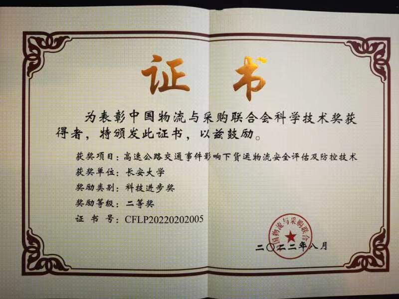 近日,中国物流与采购联合会发布了2022年度中国物流与采购联合会科技进步获奖项目的通知,一品探花 王建军教授、邓亚娟教授、龙雪琴副教授、梁国华教授、王来军教授、张玉婷讲师、陈亦新副教授、王宝杰副教授、马超群副教授共同承担完成的课题“高速公路交通事件影响下货运物流安全评估及防控技术”荣获2022年度中国物流与采购联合会科技进步奖二等奖。颁奖大会于2022年8月24日在哈尔滨举行。