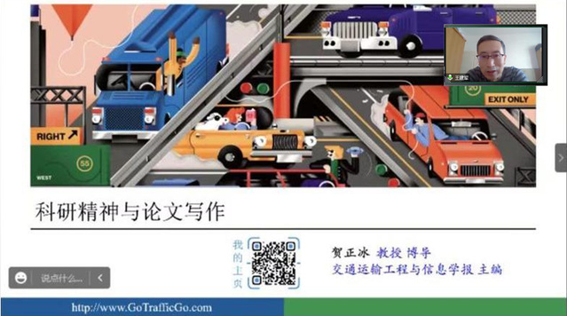 11月25日下午,学院邀请到北京工业大学博导、交通运输工程与信息学报主编贺正冰教授,作学术报告。讲座由王建军副院长主持。在讲座开始前,王建军副院长对贺正冰教授的研究方向和学科背景进行了介绍,并对贺教授表示热烈的欢迎。随后,贺教授作了题为“科研精神与论文写作”的报告,学院共计120余名师生参加了此次讲座。