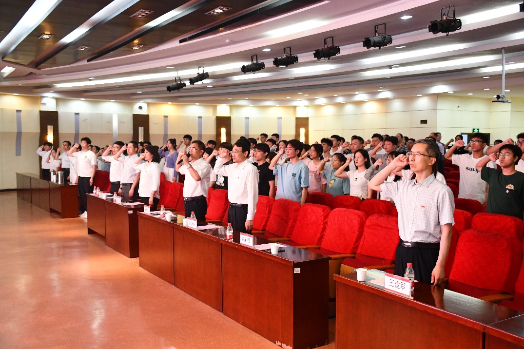 院党委书记田新民带领新党员宣誓、老党员重温入党誓词