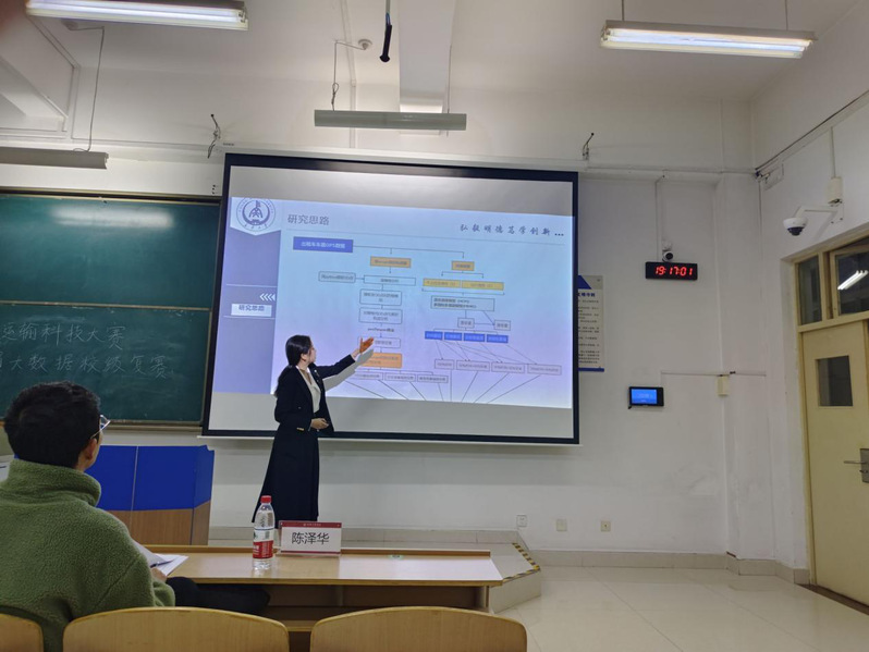 12月14日晚,大赛本科生组决赛于WH1205教室成功举办。学院教师左琛、袁宁波、陈泽华担任大赛评委。答辩由院科协赵梓乔同学主持。