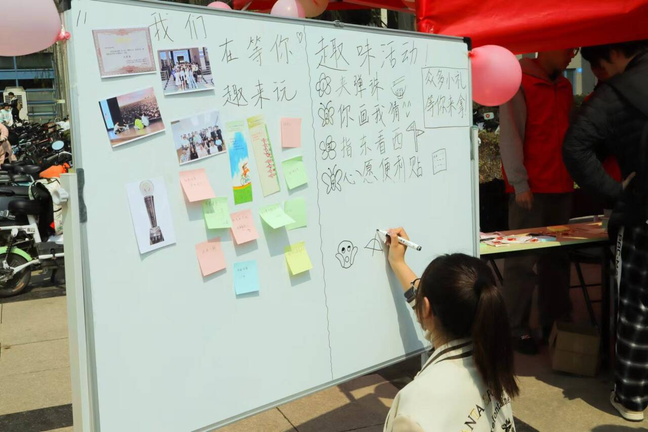 为帮助同学们强化心理健康意识,学院彩虹心理协会以“舞于渭水高台,挥之青春色彩”为主题,于树蕙园广场设置“夹弹珠”、“你画我猜”、“指东看西”、“运输心愿墙”四个体验活动,帮助同学们放松身心、缓解压力的同时,引导同学们增强心理调节能力,提高心理健康水平,促进身心和谐全面发展。