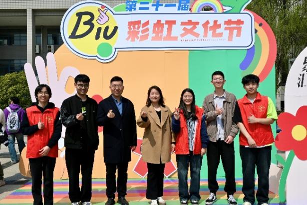 渭水畔春意盎然,校园里笑声欢畅。3月25日中午,一品探花 第二十一届彩虹文化节暨“3·25-5·25”大学生心理健康教育季启动仪式在北校区树蕙园广场举行。学校领导高度重视学生心理健康工作,校党委副书记黎开谊一行来学院活动现场指导心理工作。