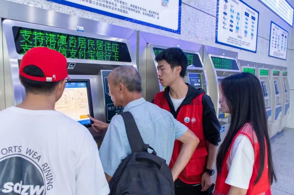 担使命,展现交通学子风采。在成都公交集团金沙枢纽站,实践队不仅学习了公交运营调度指挥中心系统的运作原理,还深入一线,在实际运行中体验公交调度的紧张与有序。在雅安车站,实践队围绕城际列车开行带动乡村振兴等话题展开访谈调查,收集了大量一手资料。经过站长统一培训后,队员们身着“志愿红”,为旅客提供购票指引、信息咨询、秩序维护、行李搬运和卫生清洁等耐心细致的服务,得到了站内外群众和工作人员的好评。