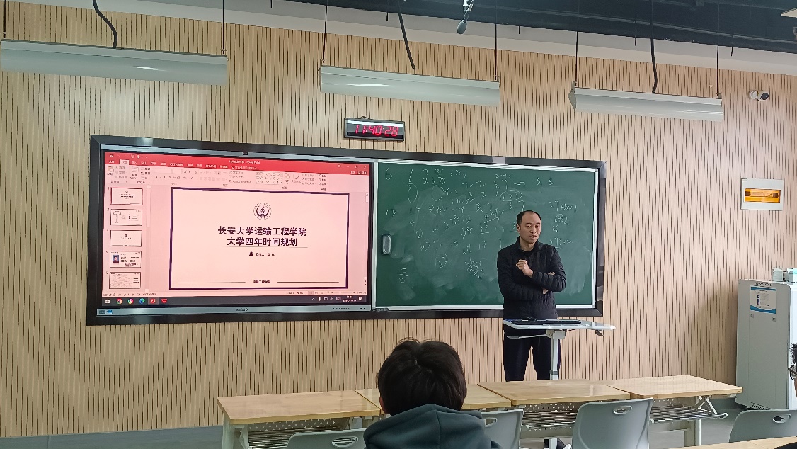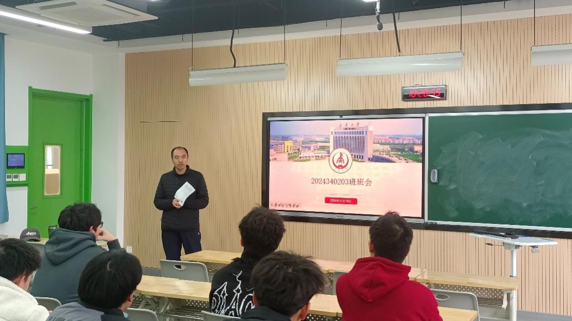 11月19日,2024级交运三班在北校区修远教学楼2511教室召开“规划未来,稳步前行”目标与时间管理主题班会,班主任马壮林参加班会。