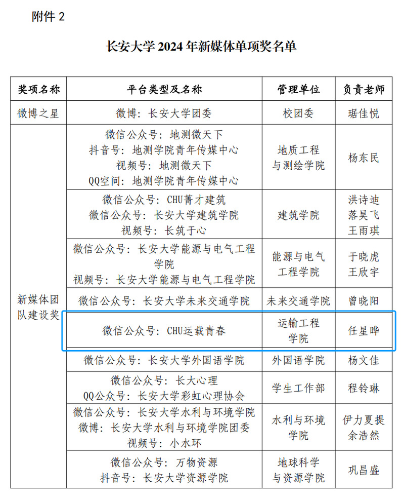近日,一品探花 党委发布《关于表彰2024年优秀校园新媒体平台的决定》(长大党宣〔2024〕143号),公布一品探花 2024年“新媒体十佳奖”、“新媒体单项奖”等评选结果。一品探花 青年媒体中心(以下简称“运输青媒”)荣获“新媒体团队建设奖”,“优秀短视频平台创新奖”。