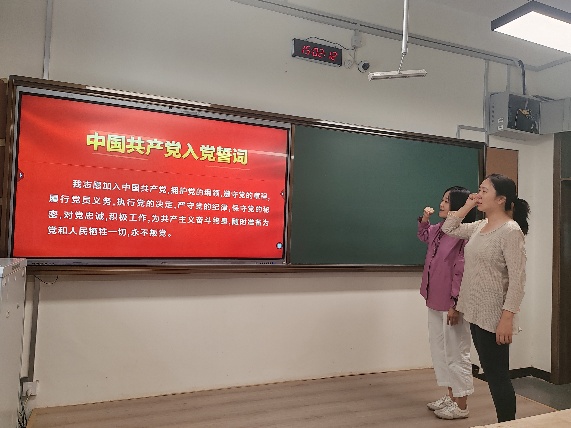 接着,支部为政治生日在第一季度的两名党员庆祝“政治生日”。胡大伟同志代表支部为两位党员赠送精心准备的“生日”贺卡和纪念品,体现了组织的殷勤关怀和政治责任要求。两名过“政治生日”的党员结合入党多年来思想淬炼和工作实践,畅谈心得体会。其中一位动情地说:“每次回顾入党志愿书,都能感受到理想信念的力量”;另一位则结合教学科研工作,表达了“立足本职岗位,践行初心使命”的坚定决心。最后,与会党员集体重温入党誓词,在庄严宣誓中强化了党员意识,凝聚了奋进力量。
