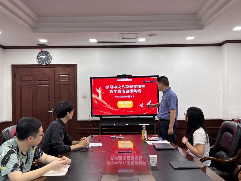 活动特邀学院副院长柏强讲授中央八项规定精神专题党课,活动形式采取线上线下相结合。柏强结合全面从严治党要求与高校工作实际,深入剖析中央八项规定精神的核心内涵与实践意义,强调“作风建设永远在路上”。他通过典型案例分析,警示党员同志严守纪律红线,并鼓励博士生党员在科研与生活中发挥模范作用,以扎实学风和务实行动践行中央八项规定精神。党课内容既有理论高度,又贴近学生实际,引发党员热烈讨论。