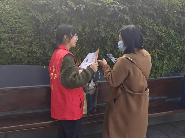 志愿者耐心向路人介绍活动