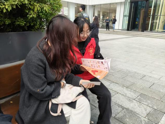 活动现场,志愿者们身着统一红色马甲,手持宣传资料,耐心向过往市民介绍“善行100”项目的初衷与成效。面对不同群体,志愿者们展现出细致入微的服务意识:遇到身着橙色工装的环卫工人,他们主动俯身、放慢语速,逐字讲解宣传册内容;对驻足询问的市民,则热情递上资料,详细说明参与方式与项目意义。从最初的略显拘谨,到后来从容自信地沟通交流,志愿者们用真诚打动人心,收获众多市民的点赞与鼓励。初冬的街头,因这份双向奔赴的善意而暖意融融。