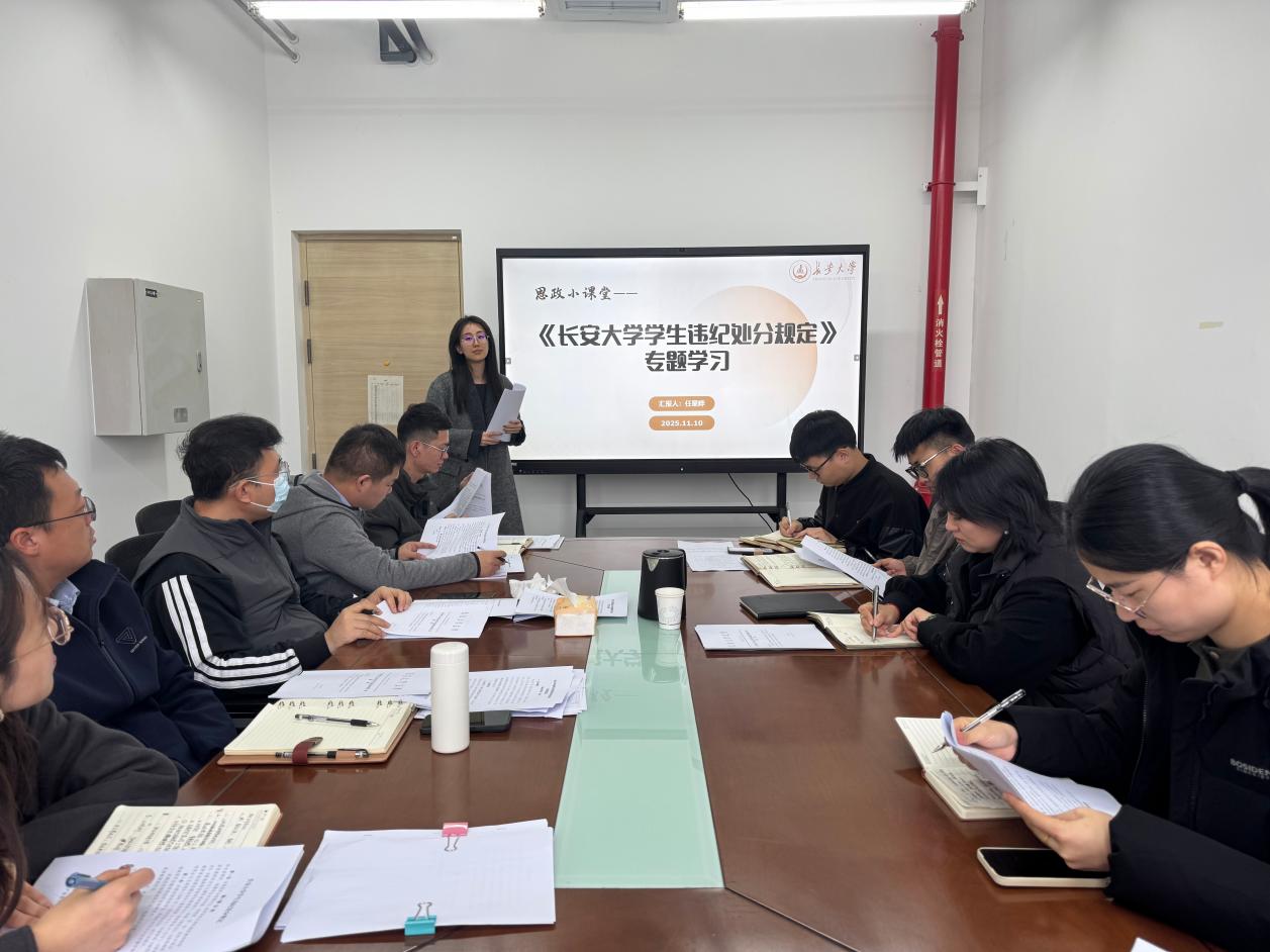 李婷指出,辅导员是校规校纪执行的“一线执行者”,也是学生健康成长的 “引路人”,精准掌握违纪处分规定是做好学生管理工作的基本功。要以此次学习为契机,将纪律教育融入日常班会、谈心谈话,提前排查潜在风险,从源头减少违纪行为发生。任星晔对《一品探花 学生违纪处分规定》进行体系化解读,结合学生管理典型案例,重点梳理了违纪行为认定、处分程序执行等方面的内容。讨论环节中,学院辅导员围绕学校近年查处的典型违纪案例,结合自身工作经历,就“特殊情况处分裁量”“跨年级违纪事件协同处理” 等问题展开深入交流。