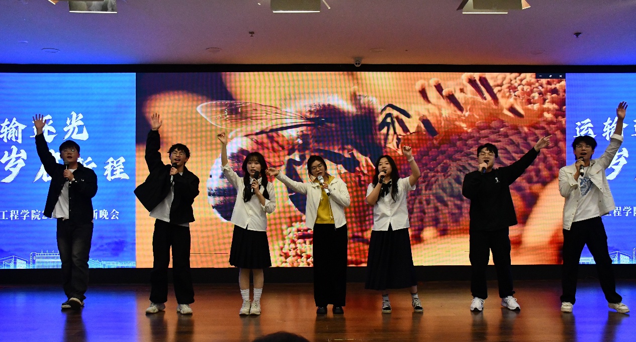 晚会尾声,辅导员代表与新生代表共同献演《夜空中最亮的星》,歌声温暖,寄语绵长,愿新生们在大学旅程中始终怀抱热爱,乘风而行。