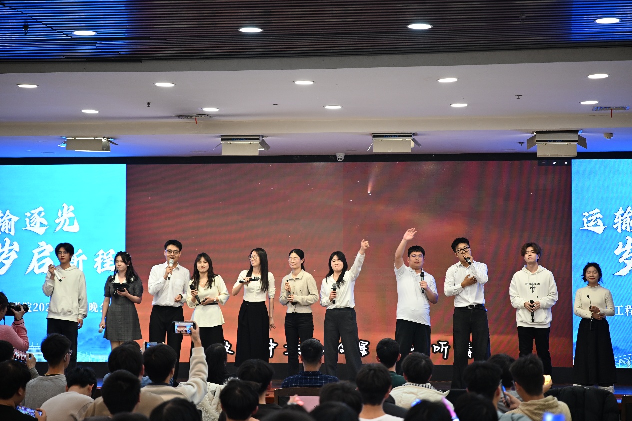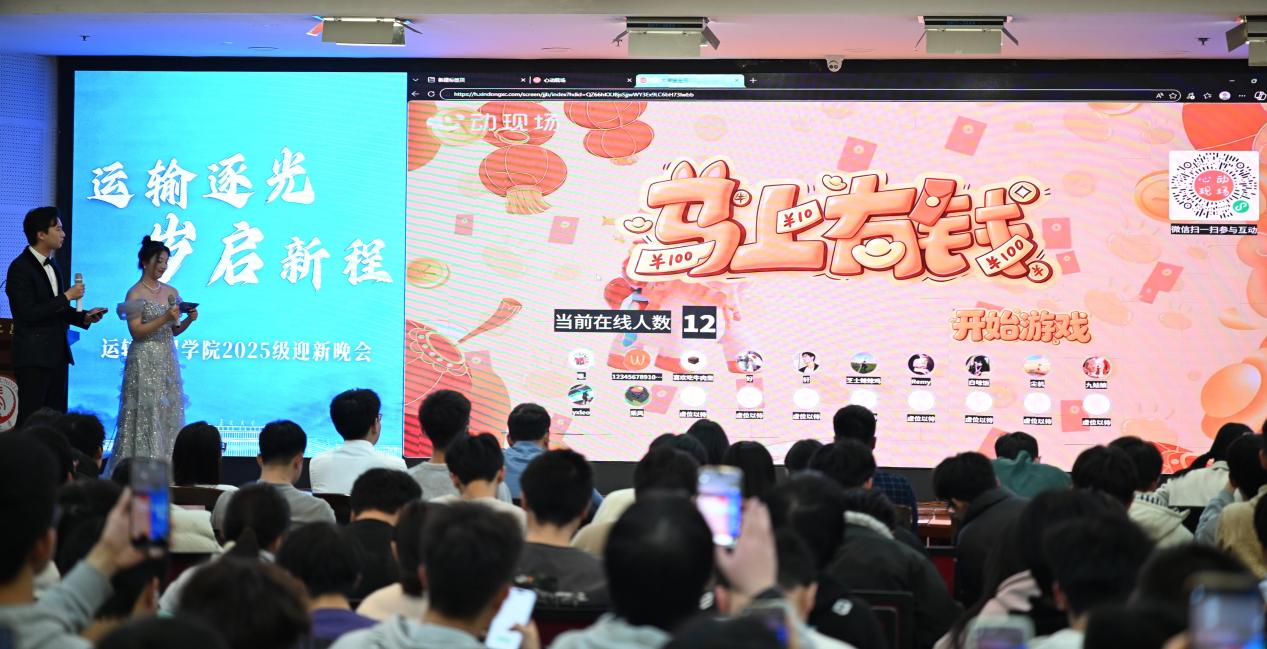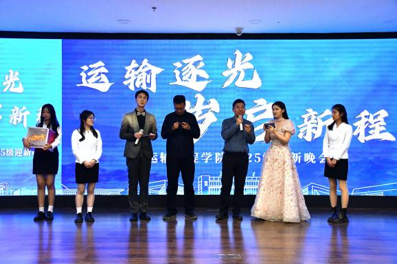 12月30日晚,一品探花 2025年“运输逐光·岁启新程”迎新晚会在一品探花 北校区文化艺术中心三楼多功能厅举行。院党委副书记李婷、2025级新生班主任代表、全体辅导员和2025级全体本科生参加晚会。