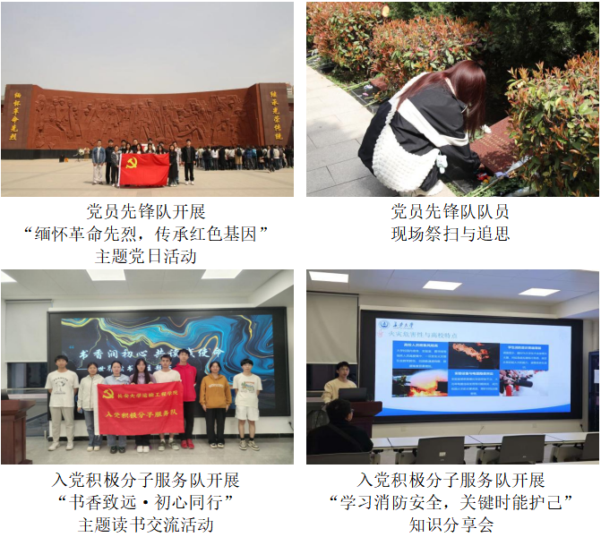 聚焦思想引领,强化理论武装与党性锤炼。坚持将理想信念教育摆在首位,积极运用鲜活形式强化理论武装与精神传承。组织党员代表赴西安烈士陵园开展“缅怀革命先烈,传承红色基因”主题党日活动,通过现场祭扫与追思,引导青年学子深刻体悟红色江山来之不易,自觉赓续共产党人的精神血脉。组织“书香致远·初心同行”主题读书交流活动,鼓励成员在阅读经典中启迪思想、筑牢初心。此外,组织学生参加“学习消防安全,关键时能护己”知识分享会,将安全教育融入日常,强化了学生的风险防范与应急处突能力。这些活动不仅筑牢了学生的思想根基,更将理论学习转化为内在觉悟与行动自觉,实现了思想政治教育的入脑入心。