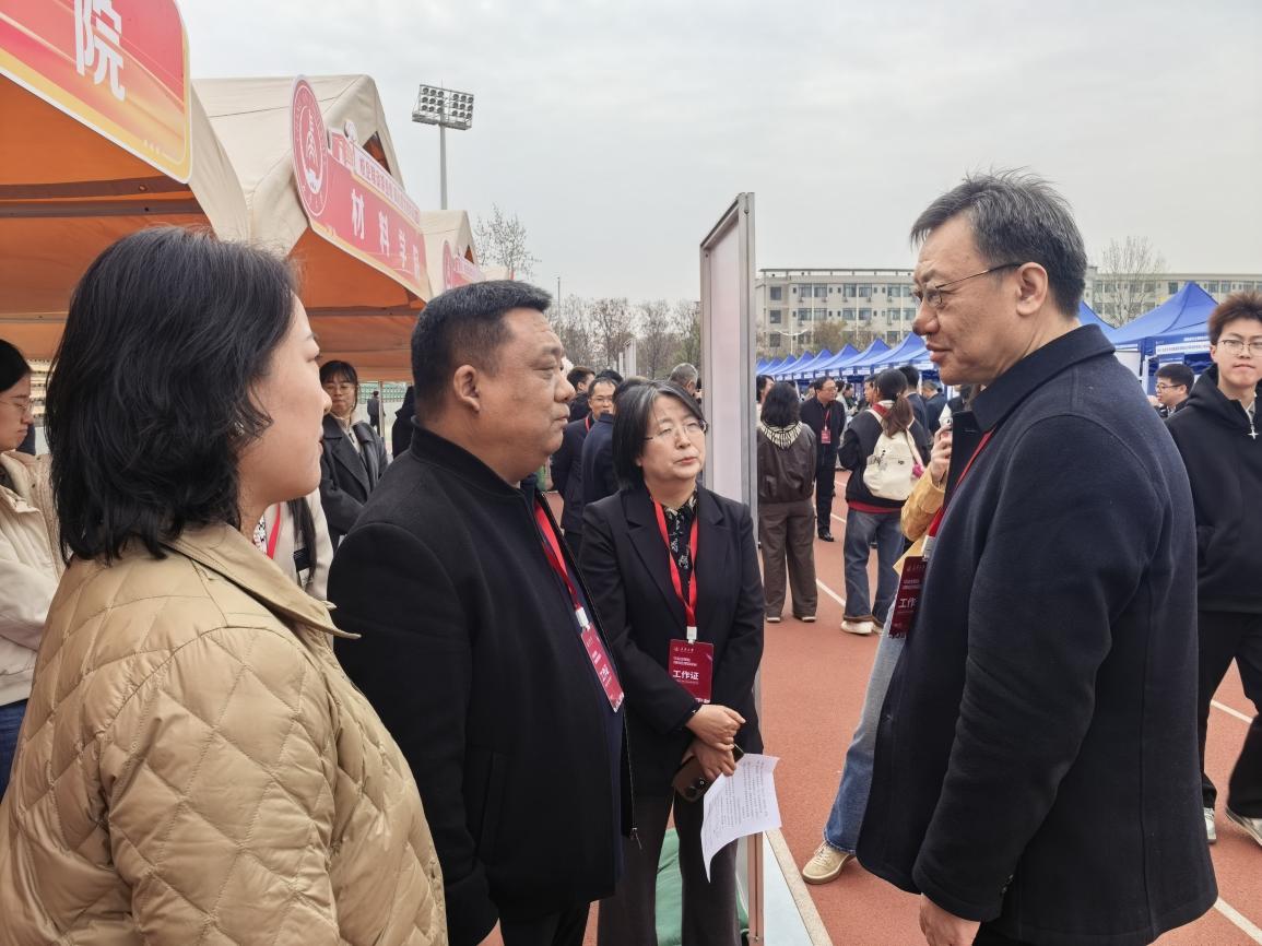 学院党委书记史少鹏,院长葛颖恩,党委副书记、副院长、纪委书记吴喜梅,党委副书记李婷深入招聘会现场,重点走访与学院专业匹配的企业,与企业代表面对面交流,详细了解行业用人需求、岗位设置情况、职业发展路径,提取用人单位对学院人才培养的意见建议。