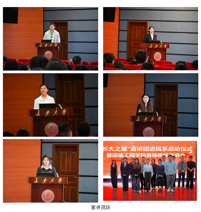 启动仪式结束后,首场榜样宣讲会正式拉开帷幕。本次宣讲会邀请了公路学院“长大之星·个人”获得者谢越、运输学院“长大之星·团队”获得者赵心玥、“奉献之星”获得者沈思美、本科生国家奖学金获得者张欣媛、研究生国家奖学金获得者辛睿轩等5位优秀榜样代表。他们结合自身经历,从科研竞赛、体育竞技、志愿奉献、学业规划等不同角度,分享了各自的奋斗故事与成长感悟,生动展现了新时代青年昂扬向上的精神风貌。