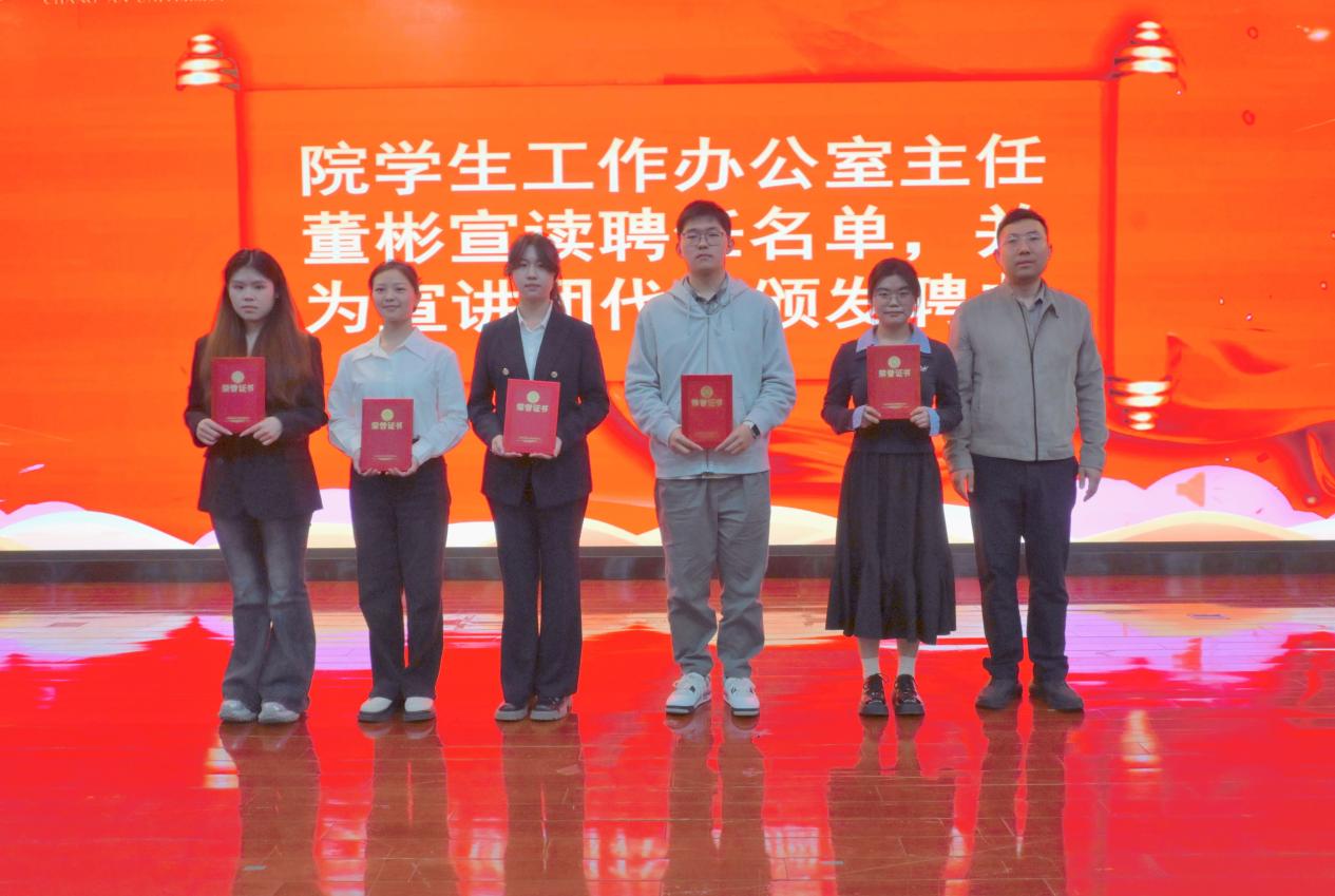 学生办公室主任董彬宣读聘任名单并为宣讲团代表颁发聘书